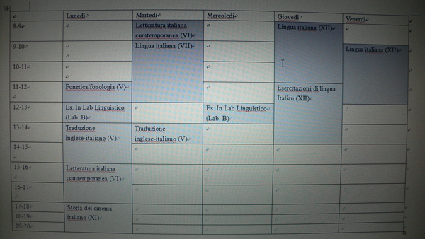 回到家,很用心的把功課表排出來。一個禮拜有兩天得一早爬起來上八點的課。唉~唸大學都沒這麼認真!要是以前,這種課通常就在家裡睡掉了,該說我這是花錢找罪受嗎?尤其禮拜一是「一條龍」:如果我選了義大利電影史當選修,我得從早上十一點,上課上到晚上八點,中間除了下課時間,完全沒有午餐和午睡的空檔!好吧,老娘跟你拼了!