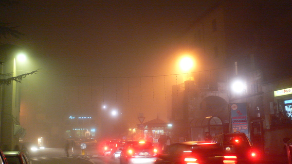 今天上義大利當代文學的課,老師雖然是美人一個,可惜課上得有點悶,看到前排同學紛紛把頭望向窗外…哇!竟然起了這麼大的霧!