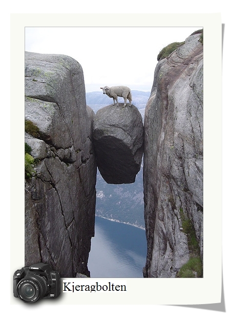 Preikestolen的形成,應該是冰河時期快結束時,冰河迅速融化,造成岩層崩裂,有時中間會夾有巨大的圓石,Kjeragbolten的bolten在英文就是「巨礫」的意思。