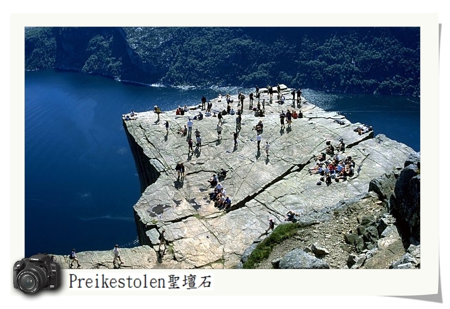 Preikestolen,有人翻成「聖壇石」,因為挪威文中,它就是一塊「長得很像佈道壇的岩壁」。從卑爾根到Preikestolen大約要三、四小時的車程,一般安排是在最近的城市Stavanger先過一夜,或住在山下的青年旅社(殘念,這家YH淡季也是不開放的…)。從青年旅社(海拔約兩百公尺),爬到聖壇石(海拔將近七百公尺),回來只要三、四個小時,不過路並不是太好走,不過山頂的view會讓你覺得一切都是值得的。