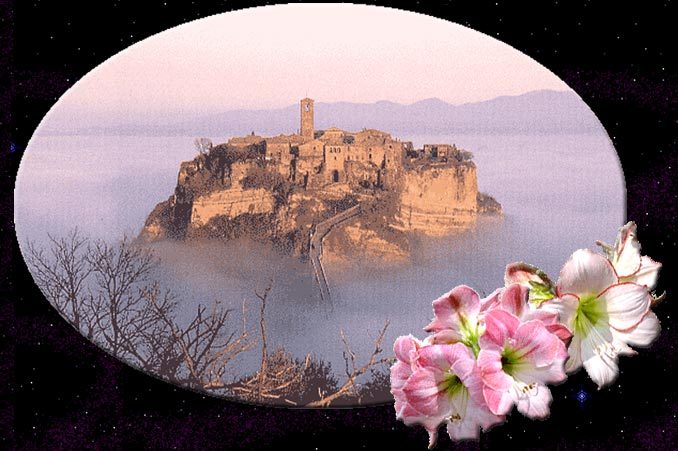 還有,比方在Perugia的時候,某個禮拜天晚上,義大利房東回家,丟了一張明信片給正在廚房K書的我。就是差不多像這樣的一張明信片:(不過沒有旁邊那些花啦)
